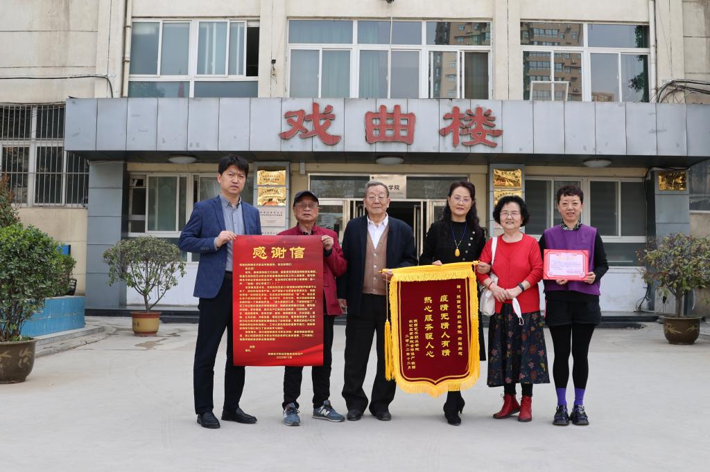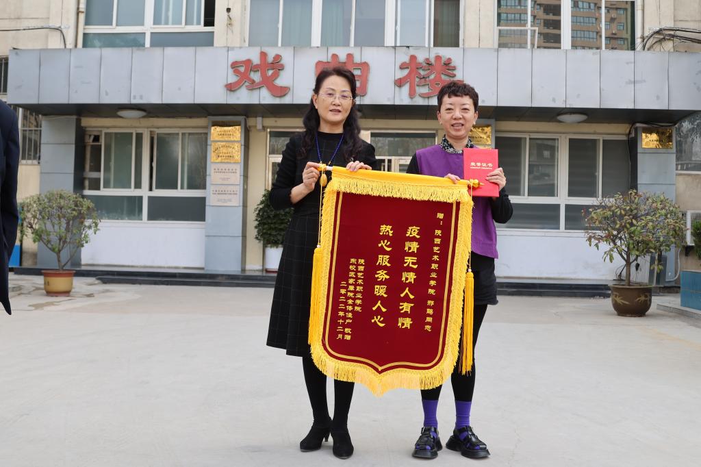 当天下午,文艺南路校区来了几位我校退休老同志及东校区的住户,他们受碑林区文艺路街道办事处委托,同时,代表我校东校区家属区全体住户,为我校工会送来感谢信,为工会邢鹃老师颁发荣誉证书、送锦旗。我校党政办主任贺波及工会常务副主席赵旭红接待了大家。