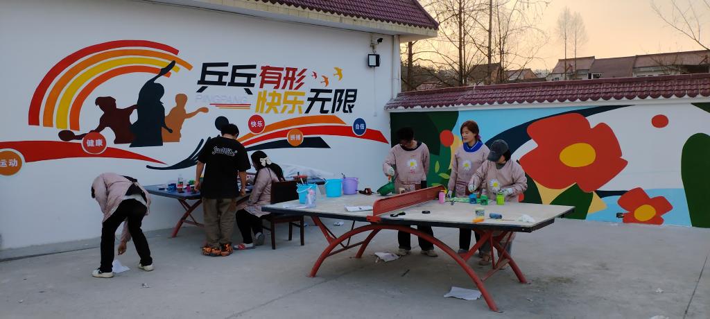陕西艺术职业学院美术与设计学院教师王涛、杨都带领10余名学生手绘500平米墙画助力城固县乡村振兴