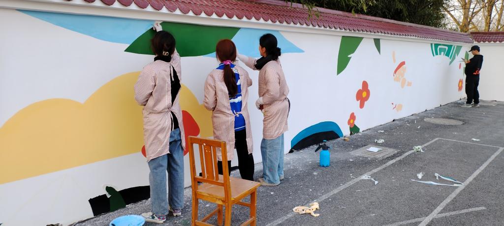 近日,陕西艺术职业学院美术与设计学院王涛、杨都两位老师带领10余名学生为城固县乡村小学绘制近500平米的墙画,提升乡村学校美育环境,用文艺助力乡村振兴。