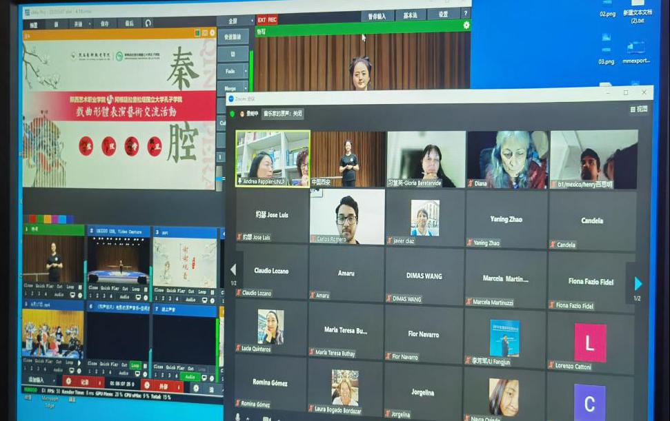 北京时间4月18日7点,阿根廷时间4月17日18点,陕西艺术职业学院与阿根廷拉普拉塔国立大学孔子学院首场戏曲表演线上交流课正式开讲。主讲人为我校戏曲学院形体教研室主任,中国戏曲学院艺术硕士韩莉老师。此次活动是我校国际合作与交流处牵头组织,教务处和戏曲学院共同承办的国际友好学校校际文化交流。阿根廷拉普拉塔国立大学孔子学院院长龙敏丽、阿根廷当地学者及孔子学院72位学生参加本次活动,一起感受了中国传统戏曲文化。