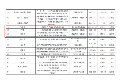 近年来,学校大力支持和鼓励教师参加各类学术交流活动,拓展科研视野,强化内涵建设。教师围绕高等职业教育发展中的热点、难点问题进行积极探索、深入研究,提出了具有针对性、时效性和现实意义的意见建议。下一步,学校将继续加强精品力作的创作和科研成果的培育工作,为服务陕西职业教育高质量发展做出积极贡献。