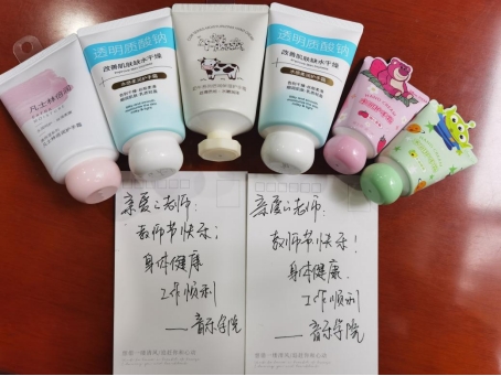 音乐学院学生录制短视频祝全体老师教师节快乐,并送上护手霜和祝福,表达出对老师的尊敬和感激之情。