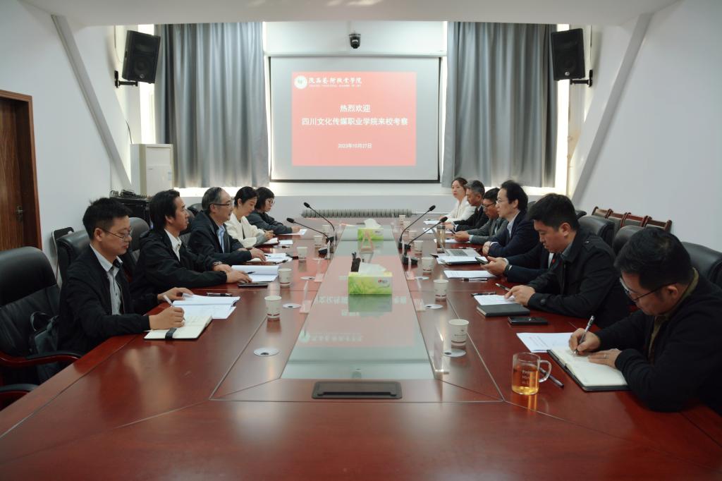 周世伟感谢学校的热情接待,对我校在跨越式、高质量发展中取得的丰硕教育教学成果表示赞赏,并介绍了四川文化传媒职业学院的历史沿革与未来发展规划。罗琴介绍了四川文化传媒职业学院专业建设情况和面临的挑战。双方针对在发展中面临的共同问题进行了深入交流,希望两校今后加强沟通,不断拓宽合作渠道,深化在学科建设、人才培养、开放办学等方面的交流合作,共谋事业发展,共创新辉煌。