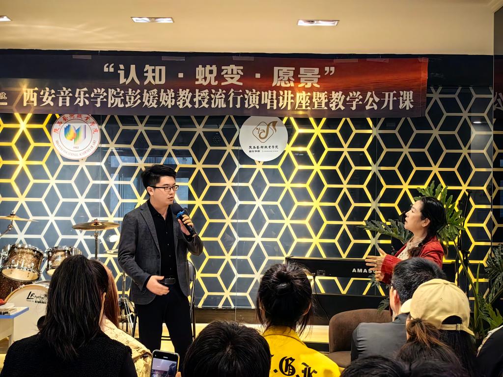 10月27日,由科研处、音乐学院主办的学术论“谈”系列讲座:“认知·蜕变·愿景”在长安校区乐工坊开讲,此次讲座特别邀请西安音乐学院彭媛娣教授为我校师生带来一场别开生面的流行演唱教学公开课。科研处处长李永春,音乐学院院长薛莲、副院长张婷婷、流行音乐教研室主任达三江及师生一同参加。