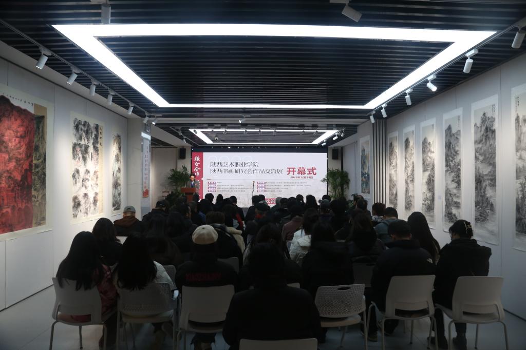 12月14日上午,陕西艺术职业学院与陕西书画研究会作品交流展在西安市土门工人文化宫举行。