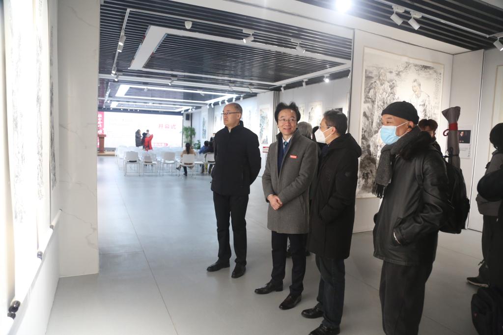 陕西艺术职业学院党委副书记、校长杨孝龙出席开幕式并致辞。陕西省美协副主席宋亚萍;陕西艺术职业学院党委副书记佘占宏;陕西山水画研究会主席西安交通大学城市学院艺术学院院长解安宁;陕西省林业厅巡视员王俊博;西安美术学院教授李百战;陕西书画研究会会长、陕西艺术职业学院教师、国家一级美术师肖幸海,陕西艺术职业学院美术与设计学院院长曹小劲,党总支书记张莉;陕西艺术职业学院党政办主任贺波;陕西艺术职业学院工会常务副主席赵旭红;土门工人文化宫主任侯鹏辉,副主任闫觅;陕西艺术职业学院美术与设计学院副院长王圣龙、王林奎,汉水传媒集团董事长刘呈友,陕西龙人书画院院长赵惠霞;陕西当代画院副院长、陕西省油画艺术研究会理事杨建武;西安市美术家协会理事、西安市鄠邑区美术家协会副主席石建利以及参会企业代表、美术与设计学院师生等参加开幕式。