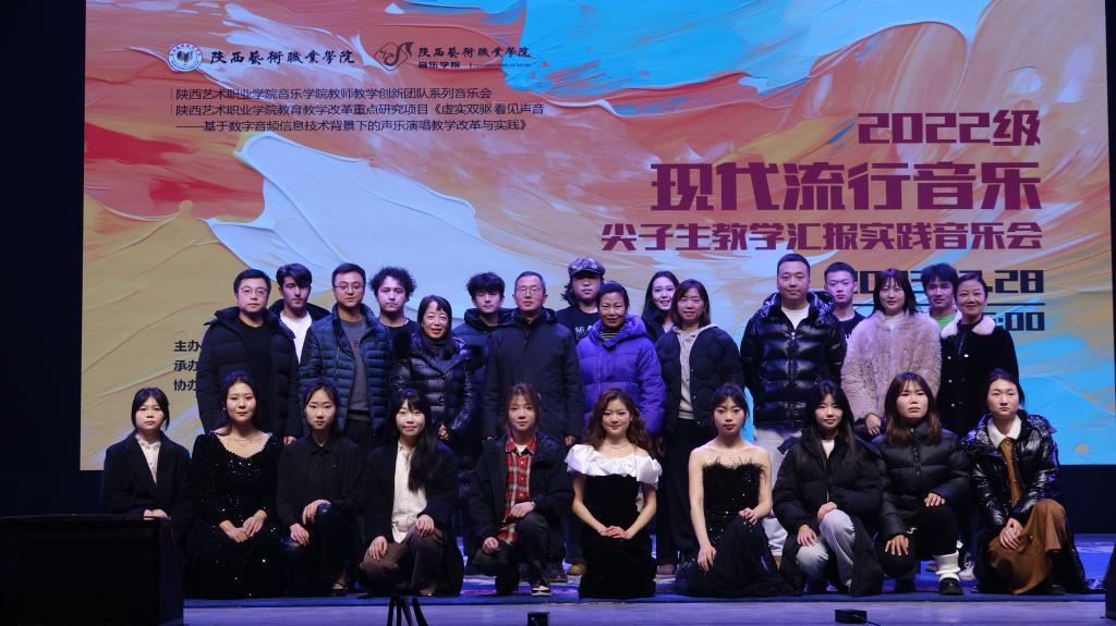 2023年12月28号,由陕西艺术学院音乐学院主办、流行音乐教研室承办、教务处及基础部协办的2022级现代流行音乐尖子生教学汇报实践音乐会在文艺南路校区实验剧场成功举办。音乐学院党总支书记郝叶妮,基础部主任王小迁,音乐学院副院长张婷婷,各教研室主任及全体师生观看了本场音乐会。