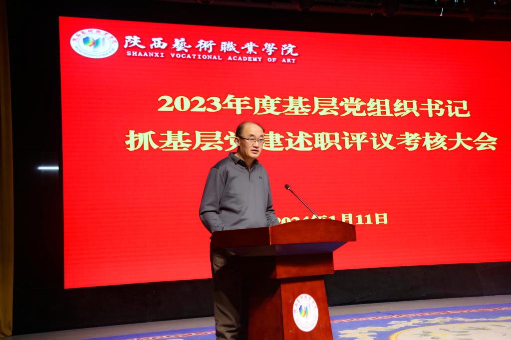 述职汇报后,刘正利对各党总支、直属党支部书记抓基层党建工作述职进行了点评。他指出,近年来学校党建工作呈现出四大特点,一是学校党员干部队伍风清气正,讲政治、善团结、重实干、作风硬;二是各基层党组织听党话、跟党走,认真落实新时代党的建设总要求和新时代党的组织路线,推动有关基层党建各项部署要求落实落地,形成齐抓共管、层层落实,抓好基层党建的良好局面;三是学校各级干部以“时时放心不下”的责任感、积极担当作为的精气神为师生群众履好职、尽好责,恪尽职守、奋发进取,不断开创学校各项事业发展新局面;四是各基层党组织立足艺术专业优势,将“党建+艺术”作为不断深化主题教育的重要举措,坚持立德树人根本任务,遵循艺术人才培养规律,深化育人成果,努力彰显新时代文艺力量。