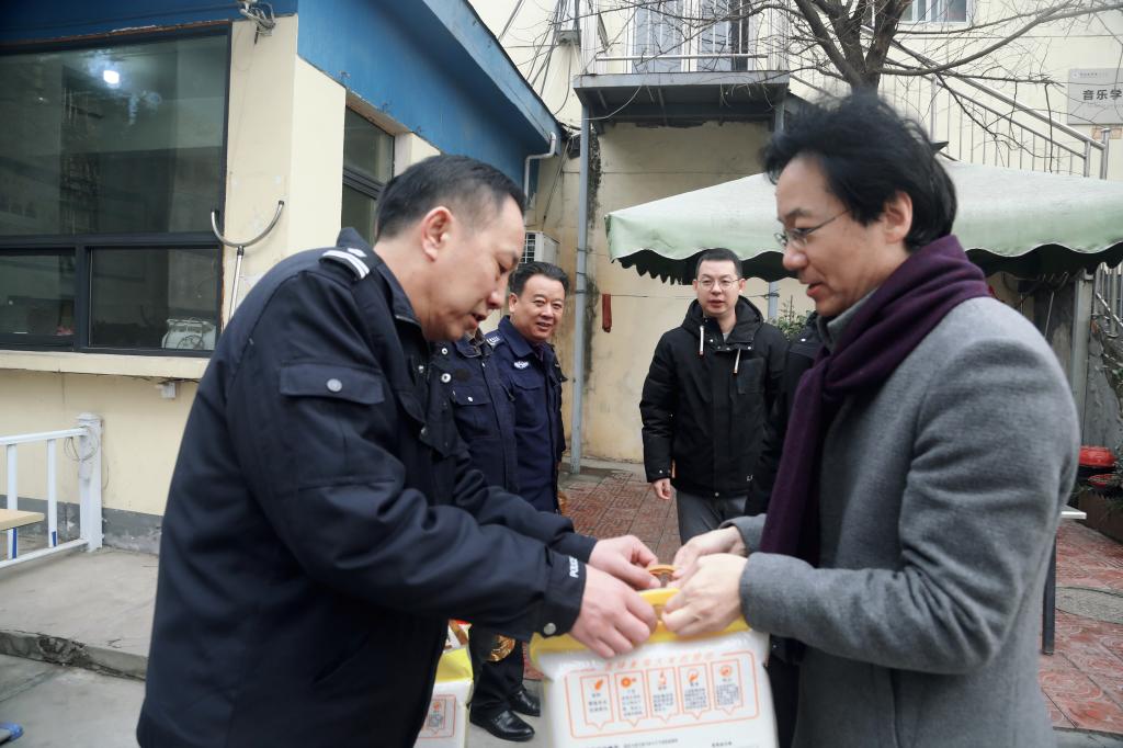 在文艺南路、东大各校区及家属院,杨孝龙看望和慰问了门卫、公寓值班人员、后勤锅炉房工作人员等,并实地检查校园安全、后勤保障等情况。杨孝龙每到一处,与寒假值守一线的工作人员亲切交谈,对他们恪尽职守、坚守一线表示感谢,并代表学校向他们及家人送上新春祝福与问候,希望大家强化“安全第一”意识,积极践行“以师生为中心”的理念,在校园内严格禁止烟花爆竹燃放,加强校园巡逻,严密防范措施,防患未然,做好后勤保障,确保寒假期间校园安全,让全校师生过一个欢乐祥和的春节。