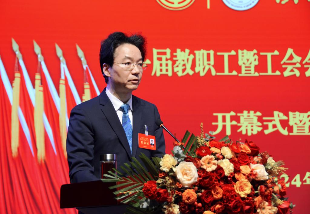 杨孝龙向大会作题为《不忘初心,砥砺前行,带领全校师生在高质量发展的新征程上做出新贡献》的工作报告。报告从秉承初心使命,牢牢把握正确政治方向;牢记固本强基,立德树人迸发新活力;坚持“双高”引领,教学科研成果丰硕;坚持引育并举,汇聚人才磅礴力量;践行师生至上,服务水平显著提高;深化开放融合,社会服务能力增强等六个方面,全面回顾学校2023年取得的丰硕办学成果,并对标国家在新时代对职业教育高质量发展的新目标、新要求以及全校师生的美好期盼,从人才培养、专业建设、队伍建设、办学条件等方面分析了存在差距和不足,对2024年主要工作任务进行全面部署。