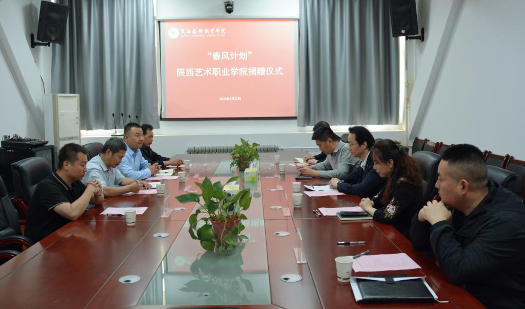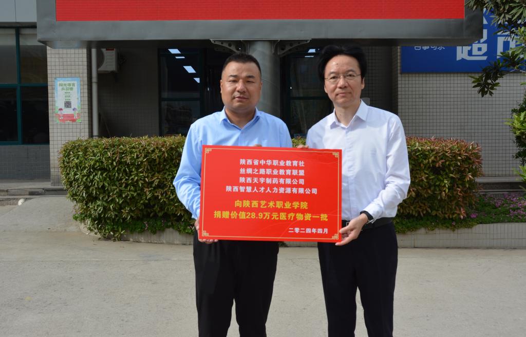 4月22日下午,陕西省中华职业教育社副主任、秘书长王彦平,丝绸之路职业教育联盟副秘书长、陕西智慧人才人力资源有限公司董事长丁旭谊,副总经理李彪,经理吴成武一行代表企业向我校捐赠了价值28.9万元的医疗物资。校党委副书记、校长杨孝龙,党委委员、学工部部长梁晓婷及党政办、后勤处、保卫处负责人共同参与捐赠仪式。