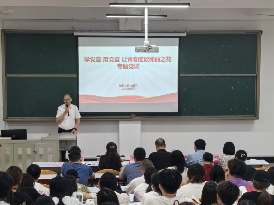 刘正利以《学党章、用党章,让青春绽放绚丽之花》为题讲授了一堂主题鲜明、重点突出、立意深远的专题党课。党课从入党誓词中领悟党员的初心和使命着手,围绕《党章》总纲中关于党的性质和宗旨、路线和纲领、指导思想和奋斗目标、组织原则和组织机构、党员义务和权利以及党的纪律等向大家作了深入浅出的讲解,加深了入党积极分子、发展对象对《党章》精神实质和丰富内涵的领会和理解。