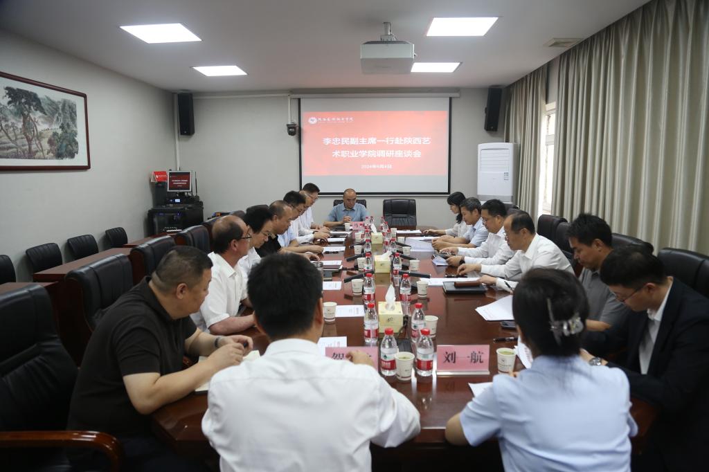 6月4日,陕西省政协副主席、省中华职业教育社主任李忠民来校调研座谈,了解职业教育改革发展和秦腔人才培养等情况。省政协社会和法制委员会主任王永明,省中华职业教育社副主任、秘书长王彦平参加调研。