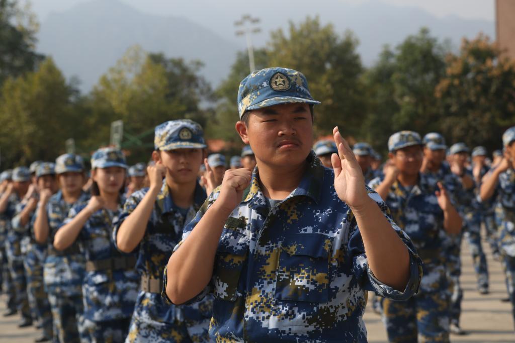 ↑党委副书记、校长杨孝龙宣布军训成果汇报展示开始