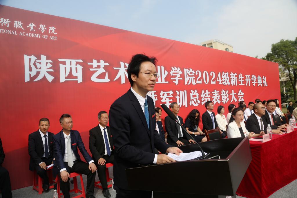 2024级学前教育学院学生王诗宇代表2024级高职全体新生发言;戏曲学院刘治代表2024级专升本全体新生发言。他们感谢军训为自己带来难忘的成长经历,感恩自己成为“陕艺”大家庭中的一员,感念学校构建“中职—高职—本科”人才培养立交桥为其提供成才成长的机会,表示将赓续学校老一辈艺术家的优良传统,恪守厚德启智、精艺尚美的校训,践行新时代新的文化使命,用热爱和奋斗努力攀登文艺高峰,在“陕艺”温暖的摇篮里,圆梦未来。
