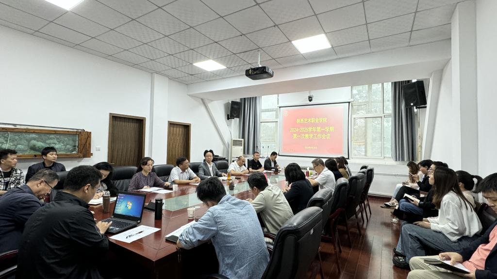 9月29日下午,陕西艺术职业学院在长安校区二楼会议室召开2024-2025学年第一学期第一次教学工作会议。此次会议旨在规划新学期的教学工作方向,确保教学质量和教学活动的顺利进行。校党委副书记、校长杨孝龙,党委委员、副校长马琳,党委委员、组织部部长许仲举,党委委员、学工部部长梁晓婷,教务处处长张格,科研处处长李永春,财资处处长黄敏以及各二级院(部)的负责人、主管教学副院长、教学秘书一同参加本次会议。