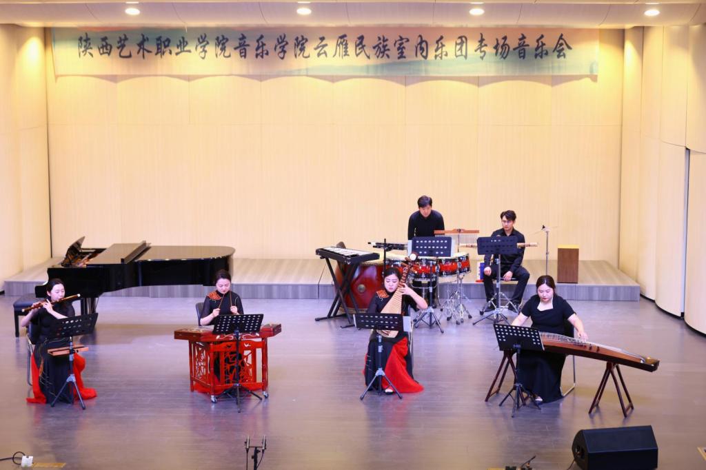 据悉,担任本场音乐会演奏的乐团成员均是音乐学院优秀青年教师和学生,乐团于2019年初由我校音乐学院院长薛莲发起组建,由热爱中国民族器乐教育事业的优秀青年教师组成,是一个年轻而富有活力的团队。乐团以弘扬中国优秀传统文化,传承陕西地方音乐为己任,秉持“传承中积累,发展中创新”,不断探索,努力成为具有时代精神,又极具地方特色的专业艺术团队。室内乐团于2019年参加由中央广播电视总台主办的中国器乐电视大赛入围全国20强;2020年获得陕西省民族器乐大赛优秀组合奖;2021年6月录制文化和旅游部“百年百项”小型作品竹笛与室内乐《飘雪》。2021年10月原创室内乐作品《青衿》获得“敦煌奖”中国室内乐新作品展评优秀奖;2021年11月录制原创室内乐作品《鸿》MV并成功入选文化和旅游部第七届丝绸之路国际艺术节青年艺术家专场“风华长安”民族器乐原创新作品音乐会。乐团成立以来参加多项国家、省市重大演出任务,代表学院参加了赴陕西省委党校、西京医院986医院、苏州工艺美术职业技术学院等多地交流演出活动,2023年参加“兴文化 育新人”舞台艺术展演活动;参加学校与苏州工艺美术职业技术学院党日联谊活动文艺演出;参加学院“双师型”教师教学成果展示活动;参与匈牙利塞格德大学巴托克艺术学院代表团来我校交流访问演出活动;参加西安秦汉新城2024新年音乐会等活动,获得极大好评。