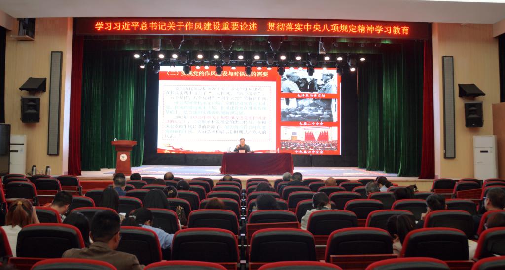4月11日,陕西艺术职业学院在文艺南路校区小剧场举行深入贯彻中央八项规定精神学习教育专题辅导报告会,邀请省委党校党的建设教研部教授、党的建设研究院常务副院长曹武军教授作专题辅导。