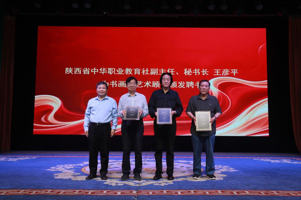 在热烈的掌声中,与会嘉宾共同为书画院揭牌,标志着陕西省中华职业教育社书画院正式成立。