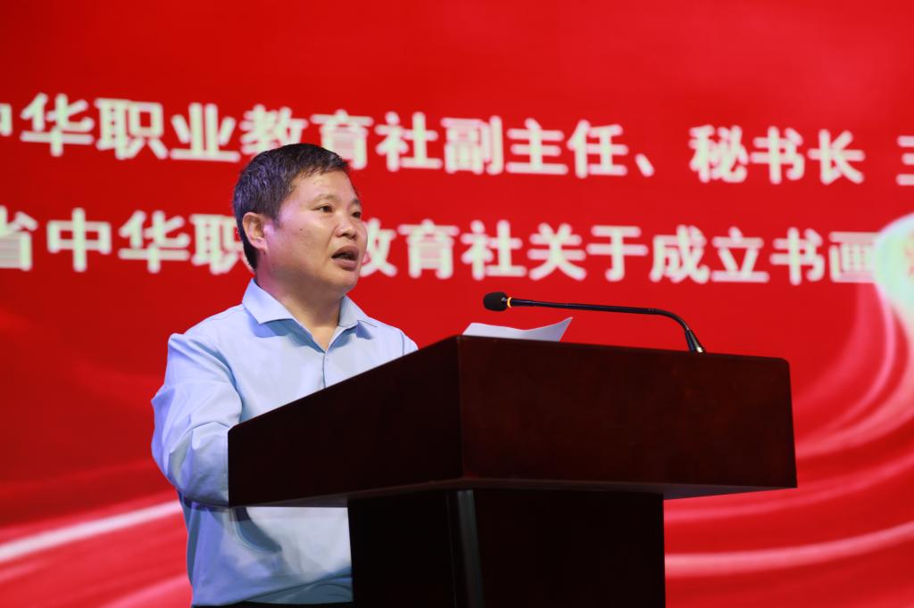 陕西省中华职业教育社副主任、秘书长王彦平宣读《关于成立陕西省中华职业教育社书画院的决定》