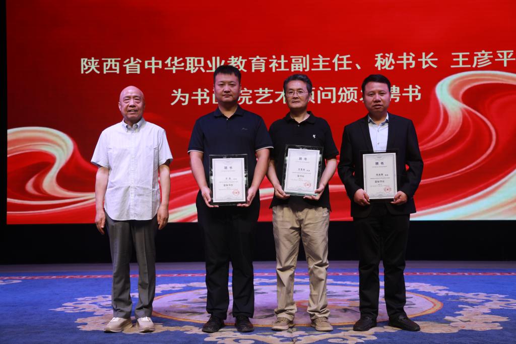 大会举行了隆重的聘书颁发仪式,陕西省书法家协会副主席、西安交通大学教授杨晓萍,陕西省美术家协会副主席、西安交通大学城市学院教授解安宁分别致辞,对书画院的成立表示祝贺,并期待书画院未来在推动书画艺术与职业教育结合方面发挥重要作用。