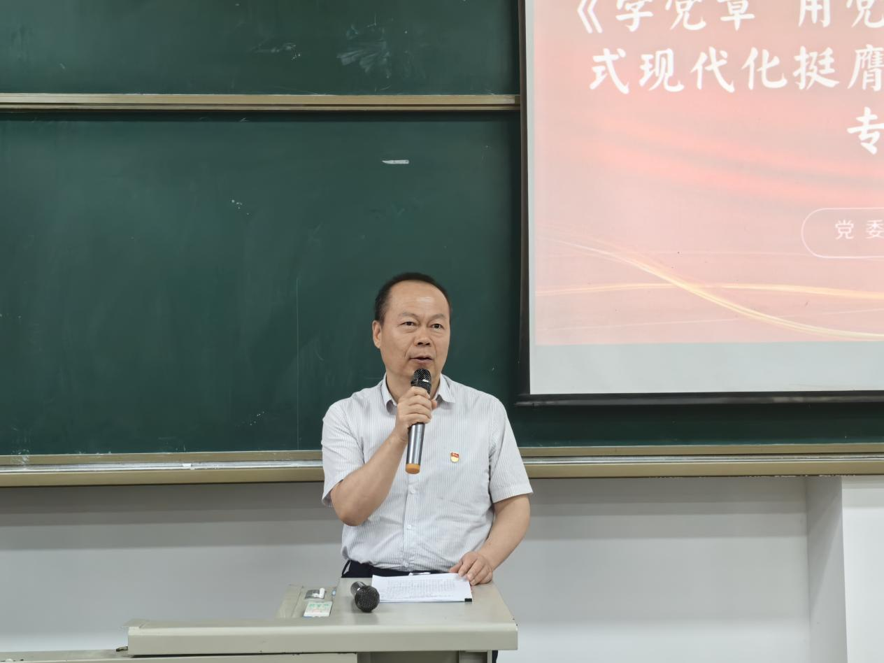 5月28日下午,校党委书记刘正利以《学党章 用党章 奋力书写为中国式现代化挺膺担当的青春篇章》为题,为2025年上半年师生入党积极分子、发展对象讲授专题党课。党委委员、组织部部长许仲举,党委委员、学工部部长梁晓婷,党政办公室、党委宣传部、团委、美术与设计学院、马克思主义学院等部门负责人及二级学院师生联合党支部书记、2025上半年确定的师生入党积极分子、发展对象约110人参加开班仪式,开班仪式由许仲举主持。
