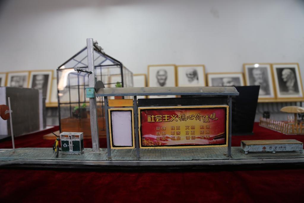 马路牙子上停的小黄车、兴庆宫门上的门神画、停在操场边的校车……学生们将日常所见,经过精心设计搬上了结课作品展,敏锐的视角、生活气息浓郁的素材、传统与现代融合的创作理念、精到的设计工艺,生动诠释了艺术源于生活。