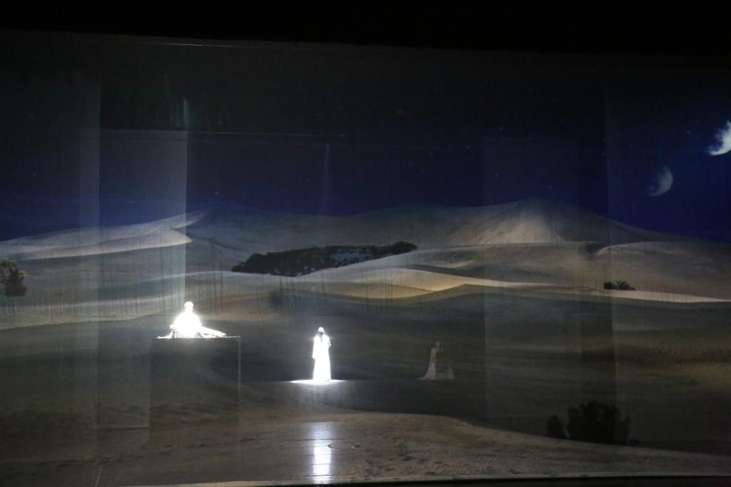 当晚,演出现场座无虚席,在深情的旁白和具有浓郁西域特色的声光电多媒体背景中,随着筝声轻起,故事正式启幕。筝声切切、箫声幽咽、战鼓沉沉、琵琶铿锵……舞姿玄妙,歌声飞扬,观众在多种艺术交融带来的全新审美享受中,跟随使节在西域寻梦中,深切感受中华民族开拓进取的“丝路精神”,与新时代人们与祖国共奋进,阔步新征程的自信。