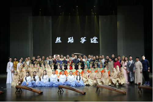 | 陕西艺术职业学院原创的中国首部跨界融合筝乐剧《丝路筝途》演出现场 |