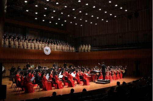 由陕西艺术职业学院党委书记王延奇作词,著名作曲家、陕西省音乐家协会原主席贺艺先生作曲的《社会主义核心价值观之歌》合唱,乐曲昂扬奋进,激励人们不忘初心,阔步新时代,把音乐会推向高潮。民族管弦乐《闹红火》《情深谊长》《我的祖国》个个演奏精湛,引入入胜。著名作曲家赵季平先生的《和平颂》,以表现“南京大屠杀”历史为题材,乐曲以震撼人心的效果,警醒世人,以史为鉴,昭示人类进步,呼唤世界永久和平。