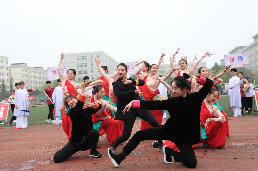本届运动会为期一天,比赛分学生组与教职工组,902名师生在田径和趣味两类共18个比赛项目中展开激烈角逐。在赛场上,学院领导亲临现场为运动员加油助威;学生运动健儿们,青春激昂、斗志昂扬;老师运动员们阳光向上,顽强拼搏,展现三尺讲台外的别样风采。全体裁判员公平公正裁判、尽职尽责;赛场广播处捷报频传,啦啦队摇旗呐喊,加油助威声此起彼伏;赛场工作人员各司其职,通力合作、各环节衔接有序为运动会顺利举行提供有力保障。运动会集竞技与趣味为一体,师生同场,相互加油,增进感情,气氛热烈,提供了一场体育文化盛宴。最终,舞蹈系获得团体一等奖,影视系、学管系分获团体二、三等奖;学管系、戏曲系、舞蹈系分获最佳组织奖、体育精神文明奖、最佳展演奖。基础部胡炜、王丽、晁希来以及学生王秦辉、王润等获优秀裁判员。
