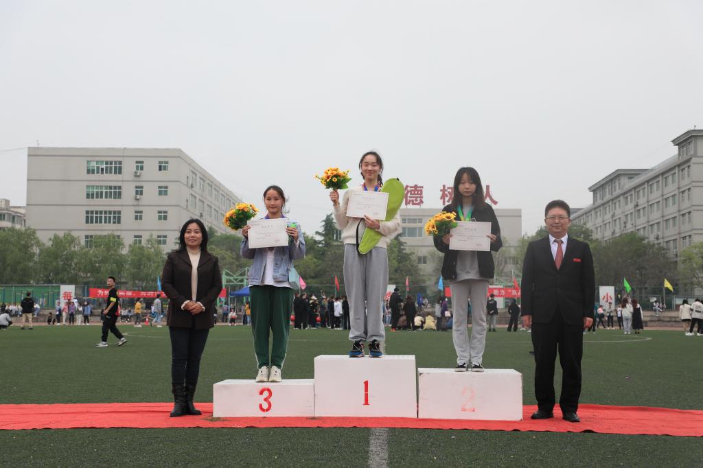 开幕式上,学生王佳乐代表运动员宣誓;基础部王丽老师代表全体裁判员宣誓。