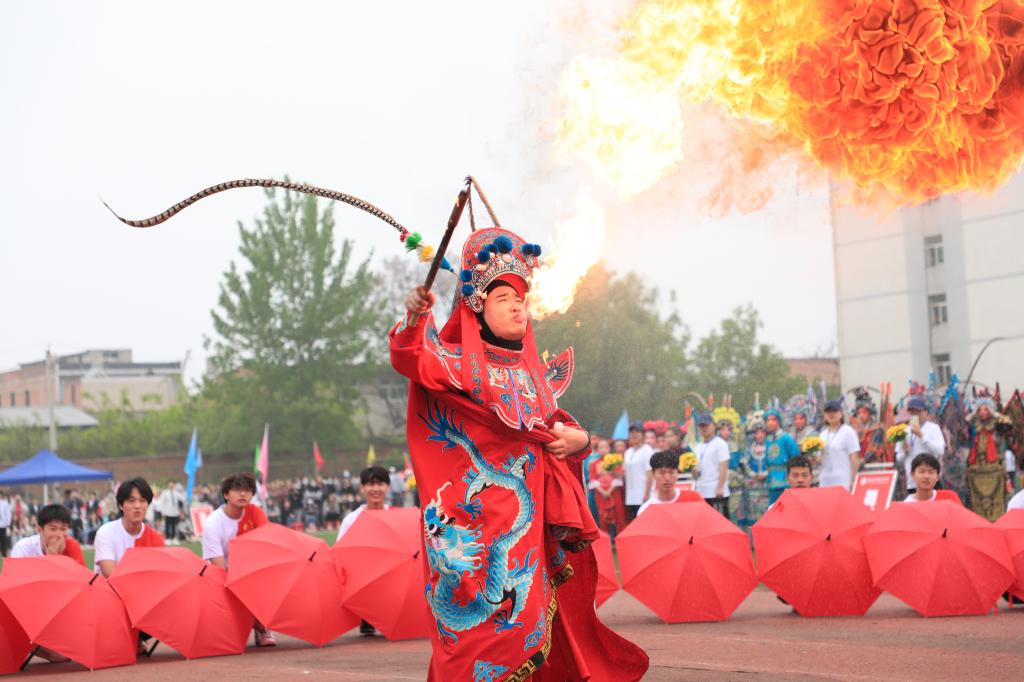 随后,伴随着高昂激荡的运动员进行曲,国旗、校旗、会旗护卫队和裁判员代表及各系部、行政处室代表队方阵依次进入会场。学院各代表队围绕运动会主题及系部专业特色,开始精彩的方阵表演,戏曲系运动员身着戏装,在铿锵锣鼓声中,以运动场为舞台,尽显戏曲传统文化魅力;影视系融川剧、武术、街舞等表演为一体,并以红伞为主要道具,变化出五星红旗造型,创意独特,寓意深刻;舞蹈系古典、民族、现代等不同类型的舞蹈轮番上阵,精湛的舞艺,满怀的激情,大放异彩;美术系运动员将手中的画笔化作一身戎甲,在别具一格的舞蹈表演中,展现独特艺术构想,赓续传统,抒写时代华章;音乐系安塞腰鼓敲起来,鼓点激越,动作豪迈,舞姿雄浑,以蓬勃向上的生命活力奏响大地之音;学管系以经典卡通人物贯穿整个表演,在充满童真童趣的同时,表演不拘一格,生动展现了依托学院艺术类专业的独特教育优势;流行音乐系啦啦操与街舞巧妙融合,编排精心,活力四射,令人耳目一新;基础部、思政部将体育与艺术表演结合,并以卡通人物形象生动诠释了体育是运动的艺术;行政处室代表队的秧歌表演,绸扇翩飞,步伐欢快,精神饱满,展示着新时代激昂向上,阔步向前的风采。