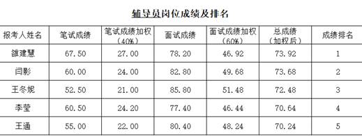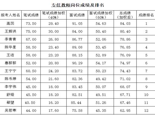 学院于2019年11月2、3日分别对应聘人员进行了笔试、专业技能展示、试讲及面试,现将成绩公布如下: