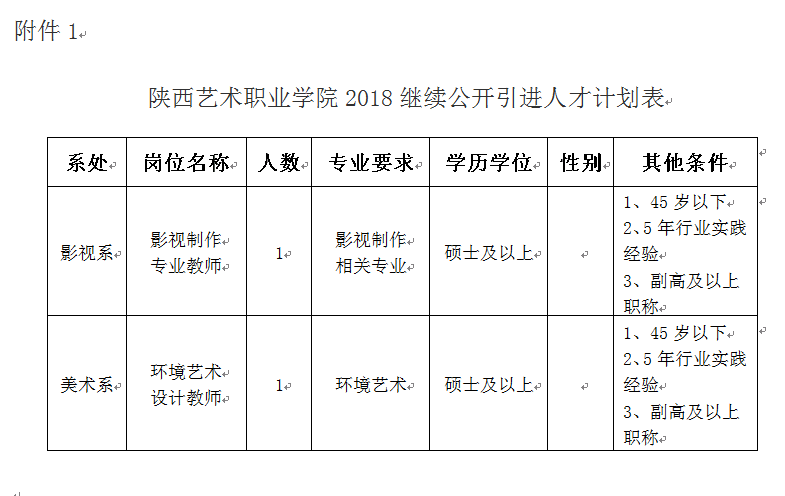 1、《陕西艺术职业学院2018年继续公开引进人才计划表》