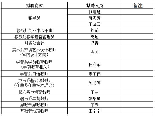 我院于2018年4月13日、14日、15日分别对各招聘岗位的应聘人员通过笔试、试讲、专业技能测试和面试各环节考试,现将拟聘人员公示如下: