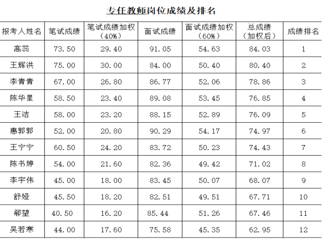 学院于2019年11月2、3日分别对应聘人员进行了笔试、专业技能展示、试讲及面试,现将成绩公布如下: