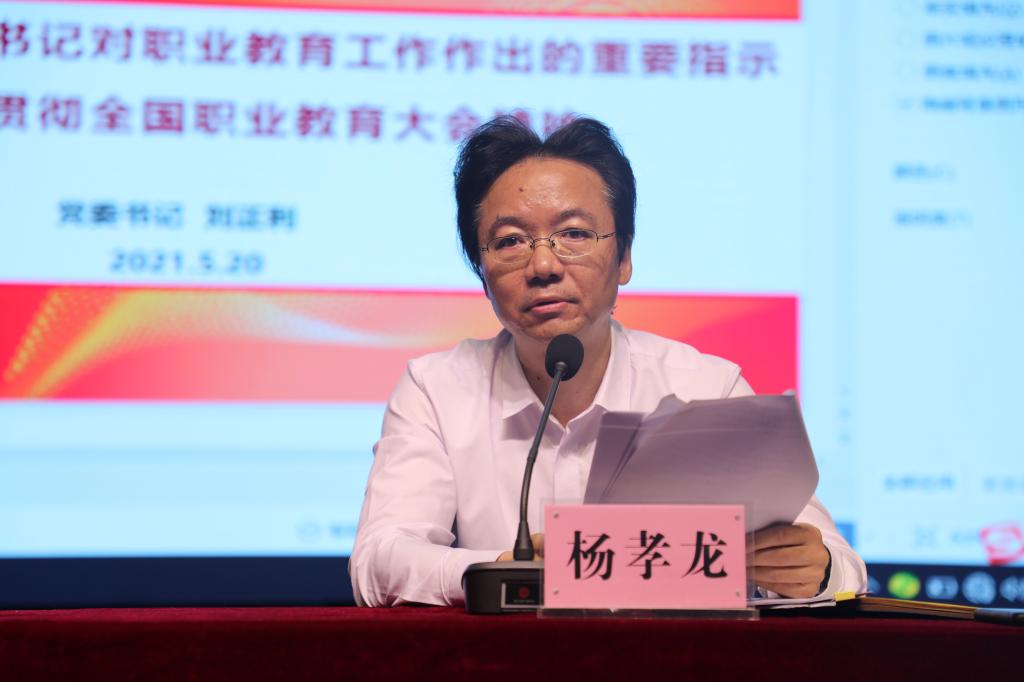 杨孝龙在总结中表示,宣讲报告政治站位高、理论视野广,紧密结合实际,为学院进一步学习贯彻落实好习近平总书记重要指示和全国职业教育工作会议精神明确了方向。他就落实好此次会议精神提出以下要求:一要把握职业教育规律,精准定位,让职业教育回归本位,对接国家战略需求和产业转型升级,提质培优、增值赋能;二要聚焦重点工作,做到重点突破,紧紧围绕党政工作要点和人才培养模式、人事制度、后勤管理、治理体系等“四项改革”,干部队伍、教师队伍、专业建设、新校区建设等“四项建设”阶段性目标任务,扎实推进工作,确保成效;三要坚持以就业为导向,统筹做好疫情防控工作,深刻认识实现学院可持续发展生命在就业,群策群力,全力以赴,切实做好当前毕业生就业工作;要绷紧疫情防控这根弦,严格执行疫情防控各项要求,各负其责,确保师生生命健康安全,以优异成绩迎接党的百年华诞。