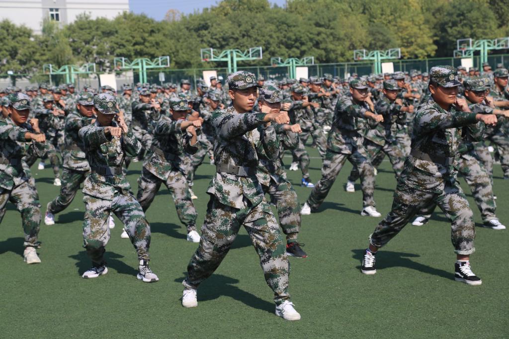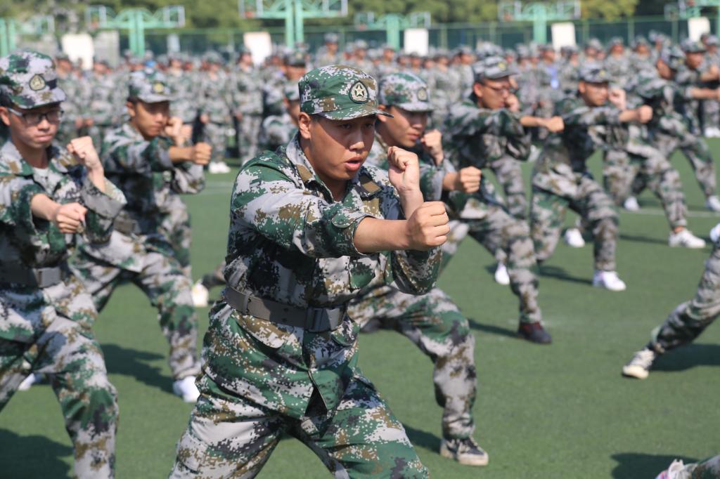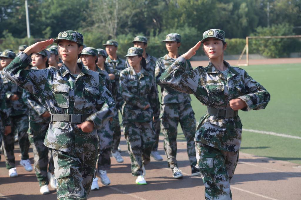 上午9时40分,伴随着高亢的国歌声,军训汇报表演正式开始。16支军训方队在军训指挥员的带领下,他们步履铿锵,目光坚定,身姿挺拔;走齐步,他们整齐划一;走正步,他们步履矫健;喊口号,他们声音嘹亮。学员们用十四天的不懈努力与汗水换来了今天的成绩。随后的队列方阵、军体拳等军训汇报表演中,同学们英姿飒爽、动作到位,展现了陕艺学子的良好精神风貌。