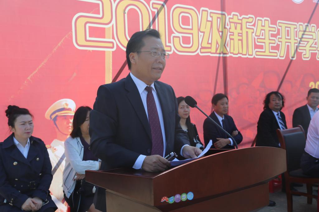 强陆平为开学典礼致辞,代表学院向军训部队的承训教官们表示衷心感谢,对新生们在军训汇报表演中的良好风貌和精彩表现表示肯定。他表示,在举国上下欢庆新中国成立70周年之际,同学们顺利完成了军训任务,上了一堂生动的爱国主义教育课。他希望同学们一是要以德育扬善。彰显光明正大的品性,以美善目标为终身追求,继承中华民族优良传统,培养良好道德操守,德艺双修。二是要以智育求真。带着人生的理想和对艺术的希冀,以坚韧不拔的毅力,饱读诗书,在真理的路上,用知识战胜困难,不断进取。三是要以体育强身。增强体质,健全人格、锤炼顽强意志品质,以坚忍不拔之志求学问道;四是要以美育塑心。感悟美、发现美,把创造美作为终身追求;五是要以劳育立行。热爱劳动、敢于创新,通过劳动和创造播种希望,收获果实,学以报国,用青春之我创造青春之中国,为繁荣发展社会主义文艺事业贡献青春力量。