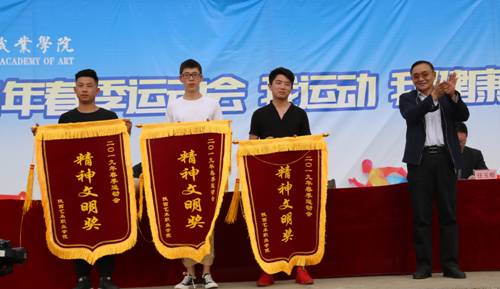 党委副书记、副院长肖幸海为获奖集体颁奖,并致闭幕辞。他代表学院向取得优异成绩的代表队与运动员表示祝贺,向全体裁判员、后勤保卫、医疗保障等所有工作人员表示感谢。他指出,本届运动会始终洋溢着竞争、拼搏、团结、友爱的良好氛围,实现了运动成绩与精神文明的双丰收。他强调,运动会虽短,但运动健身需长期坚持,希望全体师生继续发扬运动场上自强不息、超越自我的精神,充分享受运动快乐,传递阳光能量,勇攀艺术高峰,为推进体育强国、文化强国建设贡献力量,以实际行动迎接祖国70华诞。