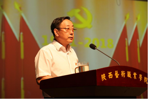 6月29日,在党的“七一”生日到来之际,陕西艺术职业学院庆祝建党97周年暨“七一”表彰大会在学院老校区小剧场隆重举行。表彰在学院党的建设工作中取得优异成绩先进基层党组织、优秀共产党员和优秀党务工作者,并以独特的文艺演出方式为党庆生。学院党委书记王延奇,党委副书记、院长强陆平,党委副书记、纪委书记杨福旺,党委副书记、副院长肖幸海,党委委员、副院长罗斌、任玉银,党委委员、院长助理邵鸣,党委委员、干部人事处处长刘艳萍与全体党员、师生代表共200余人参加大会。大会由强陆平主持。