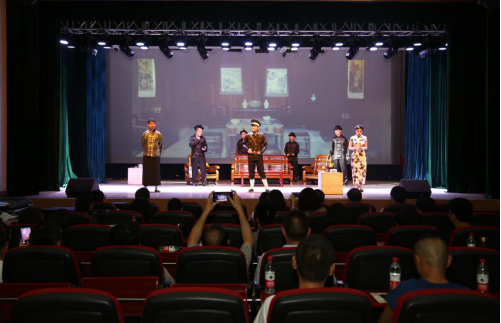 表彰会后,广大党员师生还集体观看了由影视系师生排演的革命历史题材话剧《共产党宣言》,该剧以1927年广州起义为背景,以《共产党宣言》作为主线,塑造了共产党人林雨霏在伟大思想的引领下,为追求理想、救国救民而不畏牺牲,在生与死、荣与耻、名与利的考验中,用自己无私无畏的献身精神与英雄气概,诠释了一部“现实版”的《共产党宣言》。话剧激烈的矛盾冲突、演员们精彩的表演、强烈的情感迸发,为党员师生上了一堂生动的理想信念教育课,坚定广大师生永远跟党走的信心和决心。