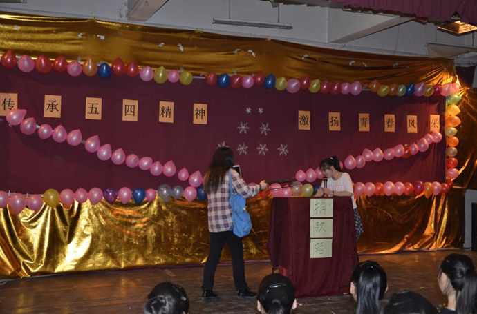 经过紧锣密鼓的系列筹备工作,以“传承五四精神、激扬青春风采”为主题的五四晚会于2015年5月7日晚在我院鱼化校区剧场如期举行。本次晚会由院学生处团委主办,并由社团联合会与学生会承办。学生处部分行政人员、鱼化校区班主任、鱼化校区两百余名学生出席并观看了此次晚会。