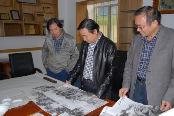 副院长肖幸海、美术系主任时振营与罗宁先生进行书画交流