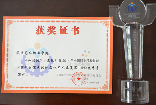 《血泪仇》是代表陕西秦腔剧目的参赛作品,由我院戏曲系主任尉霞指导,学生鲍旭东和韩明涛表演。6月26日,在天津大剧院与来自全国数家同类高职院校同台竞技,并最终以扎实的表演功底和出色的演出效果征服评委,荣获表演赛一等奖。