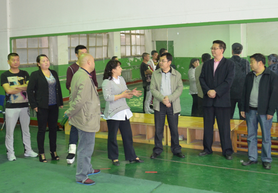 张军(右三)刘兰彭(右二)观看《韩信拜将》现场排练