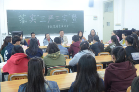 2015年11月6日下午,学管系在雁南校区教学楼513召开落实“三严三实”书画类师生座谈会。陕西艺术职业学院副院长肖幸海、学管系主任陈司元、学管系副书记梁晓婷、学管系副主任王林奎、行政秘书强小静、教学秘书丁宁、书画专业教师惠亮、张若琦以及学生代表共50余人参加本次座谈会,会议由学管系学前教育专业教研室副主任田媚娜主持。