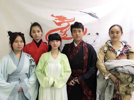 韵攸汉服社成员在活动现场合影