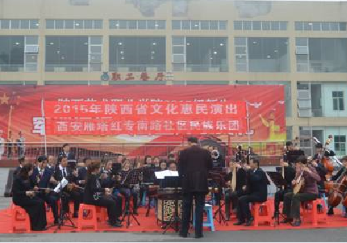 近日,由陕西省文化厅主办,雁塔区红专社区、陕西石油化工学校、陕西艺术职业学院联合承办的民乐惠民演出在我院雁南校区操场举办。